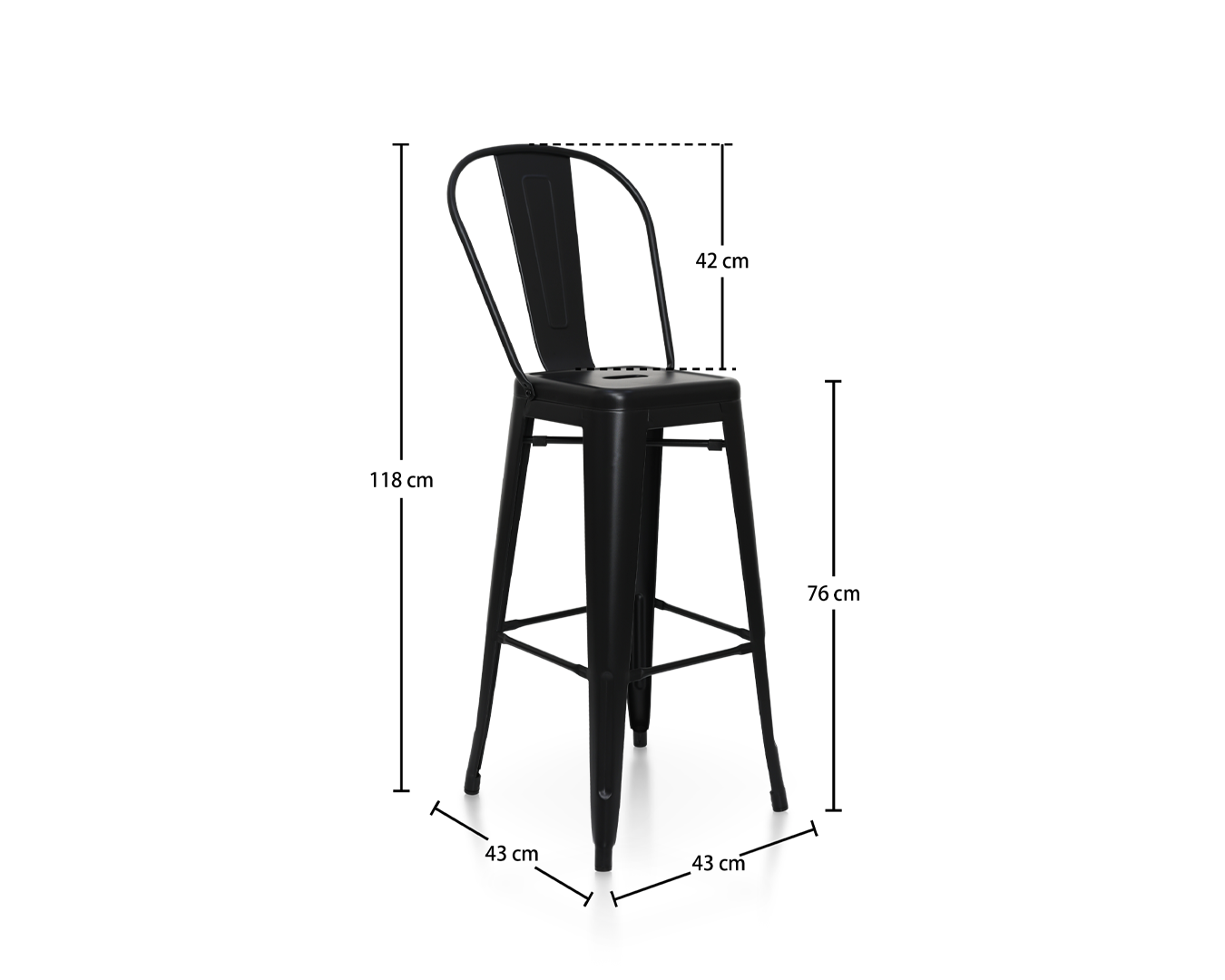 Trang chủ / Các sản phẩm / Ghế thiết kế / Black Metal Barstool với tựa lưng