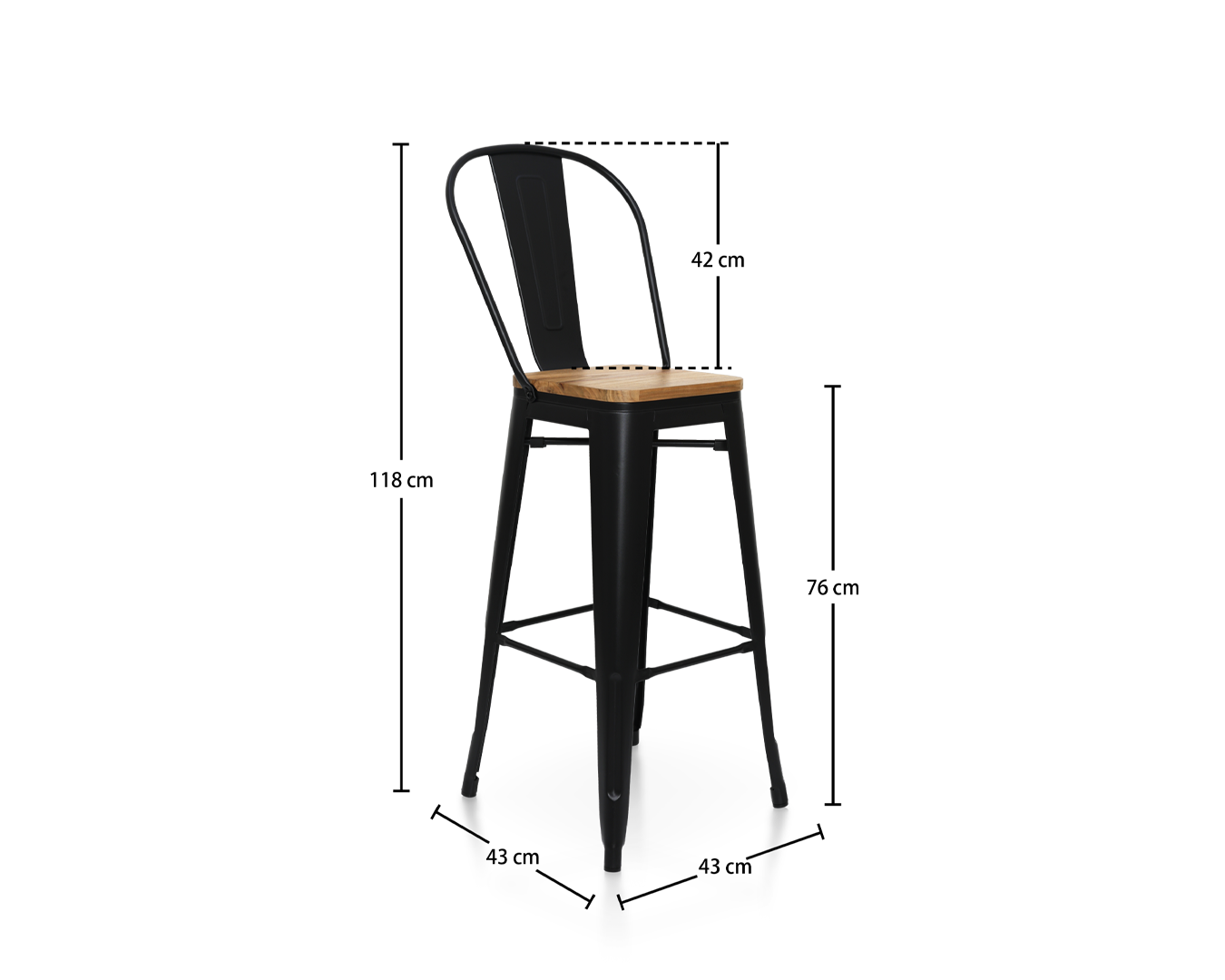 • Kết hợp phong cách cổ điển với chức năng hiện đại, những chiếc ghế này được chế tạo từ kim loại dày 1mm bền và ghế gỗ độ dày 2 mm. Thanh lịch và mạnh mẽ, họ chắc chắn sẽ đưa ra một tuyên bố trong bất kỳ không gian ăn uống nào với thiết kế nổi bật của họ, chiều cao chỗ ngồi 76 cm và tựa lưng thoải mái.