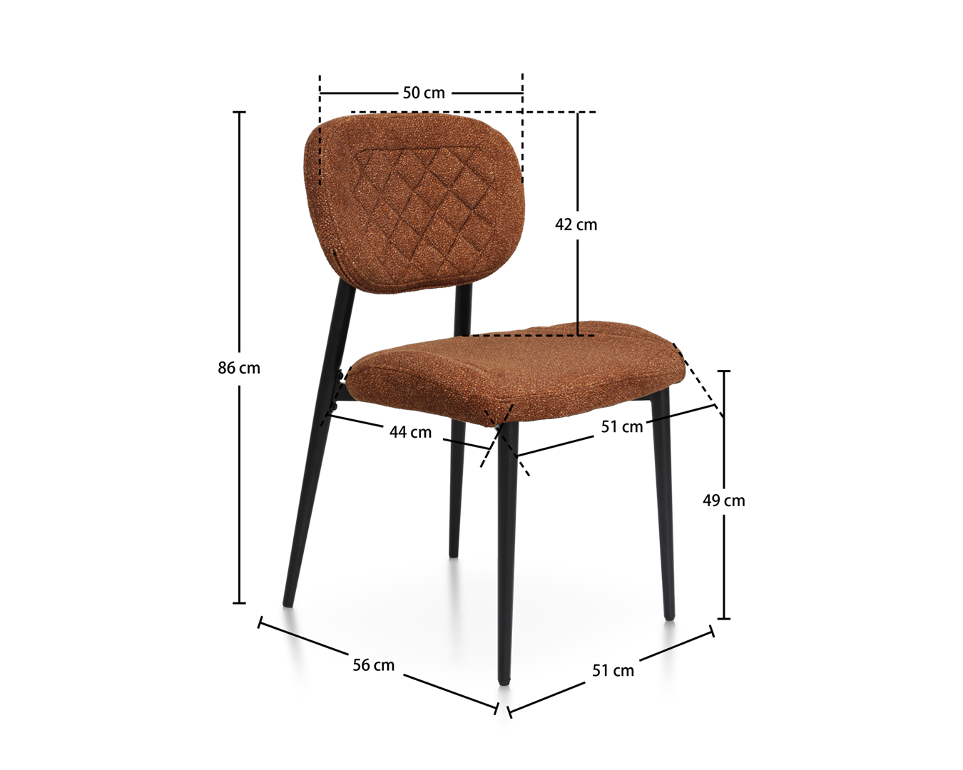 • Khung kim loại màu đen của nó không chỉ cung cấp sự ổn định mạnh mẽ mà còn bổ sung cho bộ bọc màu nâu phong phú rất đẹp. Thiết kế của ghế bao gồm một tựa lưng cong và ghế đệm, đảm bảo sự thoải mái tối đa cho tất cả người dùng. Cho dù bạn đang tổ chức một bữa tiệc tối hay thưởng thức một bữa ăn yên tĩnh một mình, chiếc ghế này sẽ nâng cao trải nghiệm ăn uống của bạn.