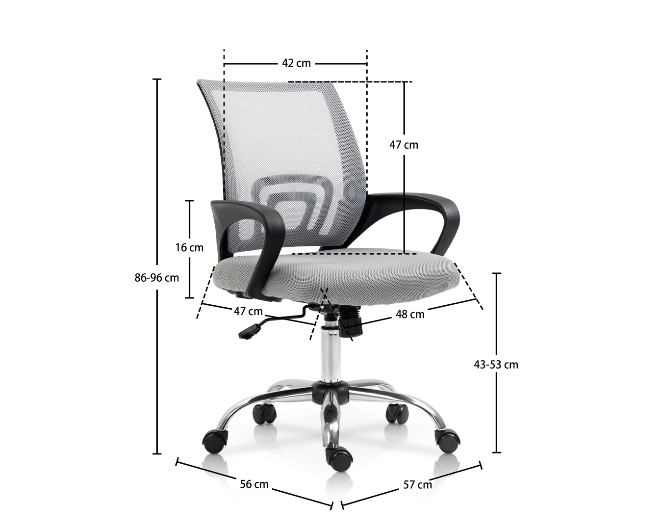 -Kích thước: W57*D56*H86-96 cm / SH: 43-53 cm