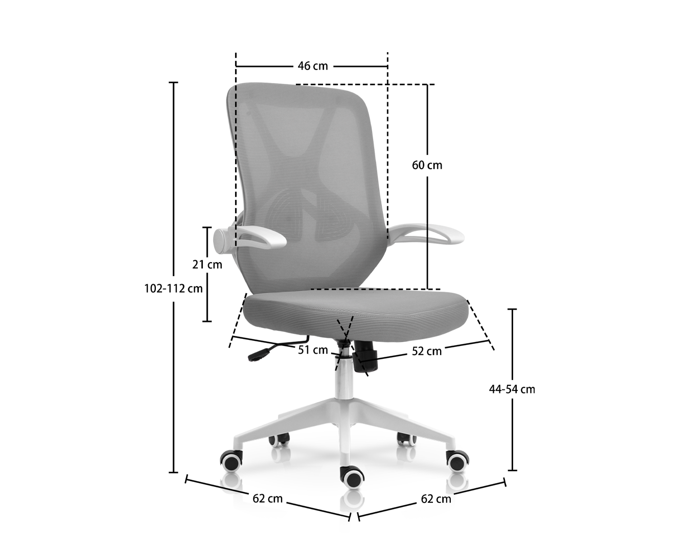 -Kích thước: W62*D62*H102-112 cm / SH: 44-54 cm