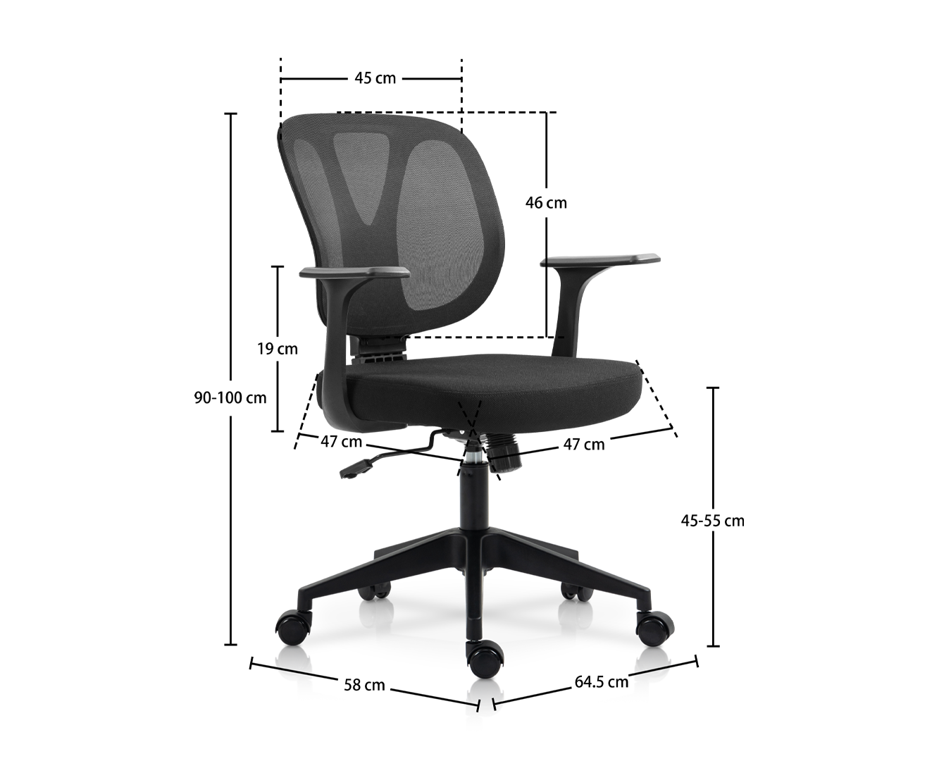 -Kích thước: W64.5*D58*H90-100 cm / SH: 45-55 cm