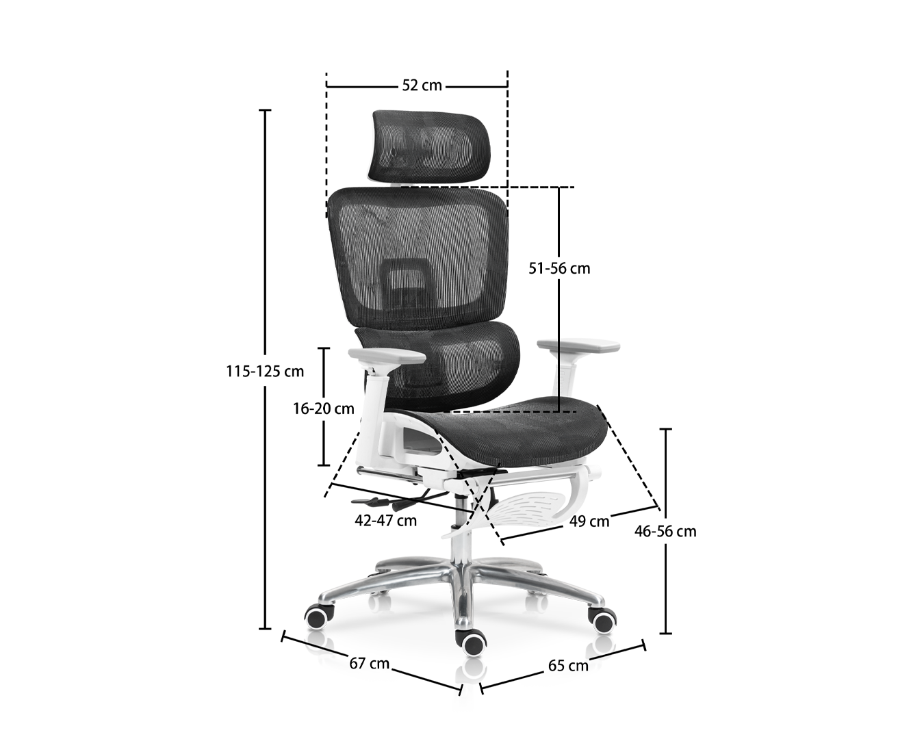 -Kích thước: W65*D67*H115-125CM / SH: 46-56 cm