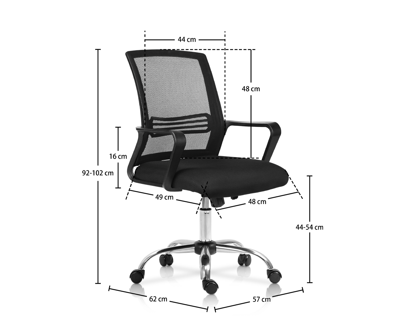 -Kích thước: W57*D62*H92-102 cm / SH: 44-54 cm