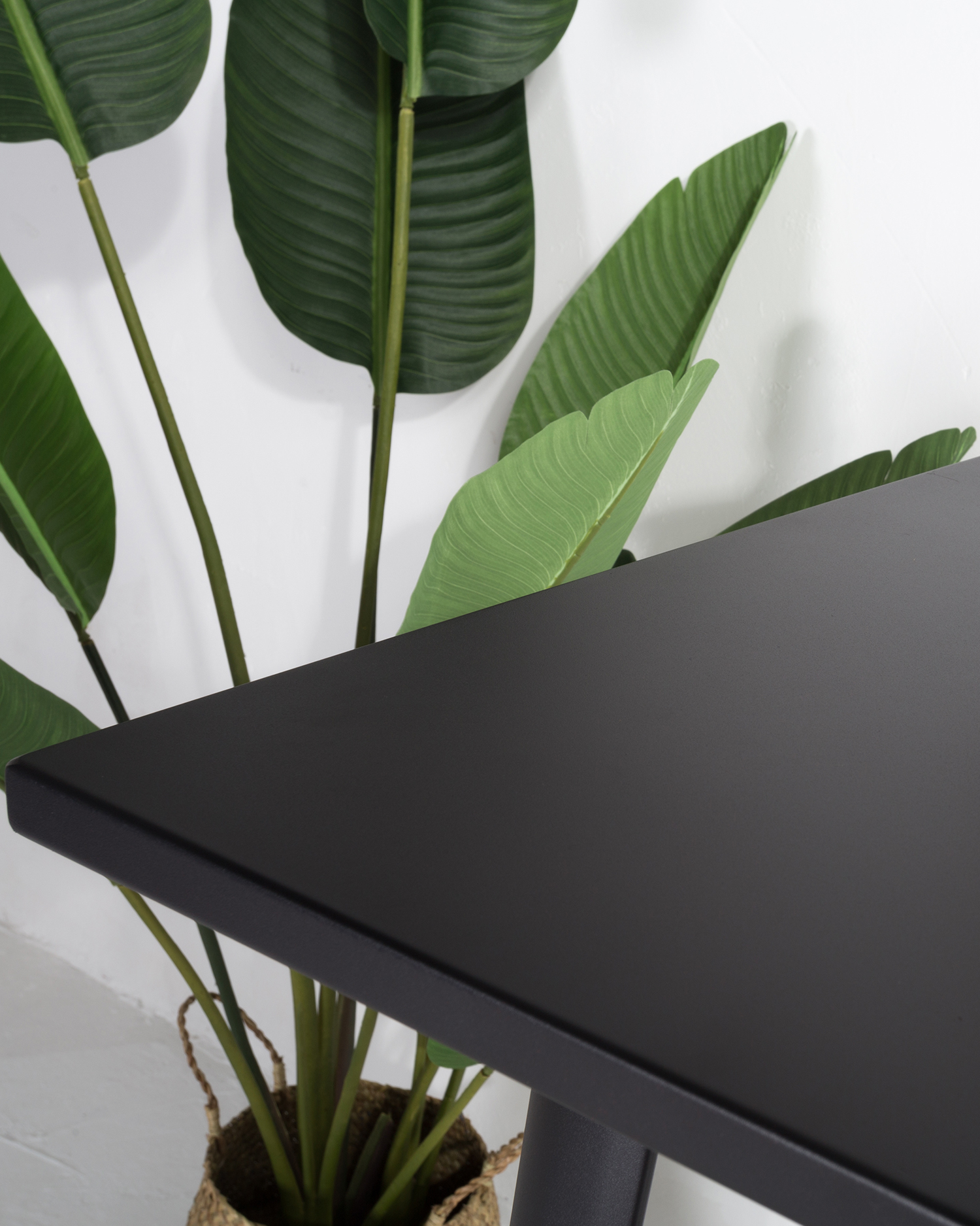 • Được chế tạo hoàn toàn từ kim loại chất lượng cao, bảng có cấu trúc tối giản nhưng mạnh mẽ, toát ra sức mạnh và độ bền. Kết thúc màu đen mờ mang đến cho nó một cái nhìn tinh tế và hiện đại, làm cho nó trở thành một lựa chọn lý tưởng cho cả môi trường trong nhà và ngoài trời. Máy tính bảng trơn tru và rộng rãi, cung cấp phòng rộng rãi cho khách, làm việc hoặc giải trí. Các chân chắc chắn được hỗ trợ bởi một thanh ngang ở phía dưới, đảm bảo sự ổn định và cân bằng.