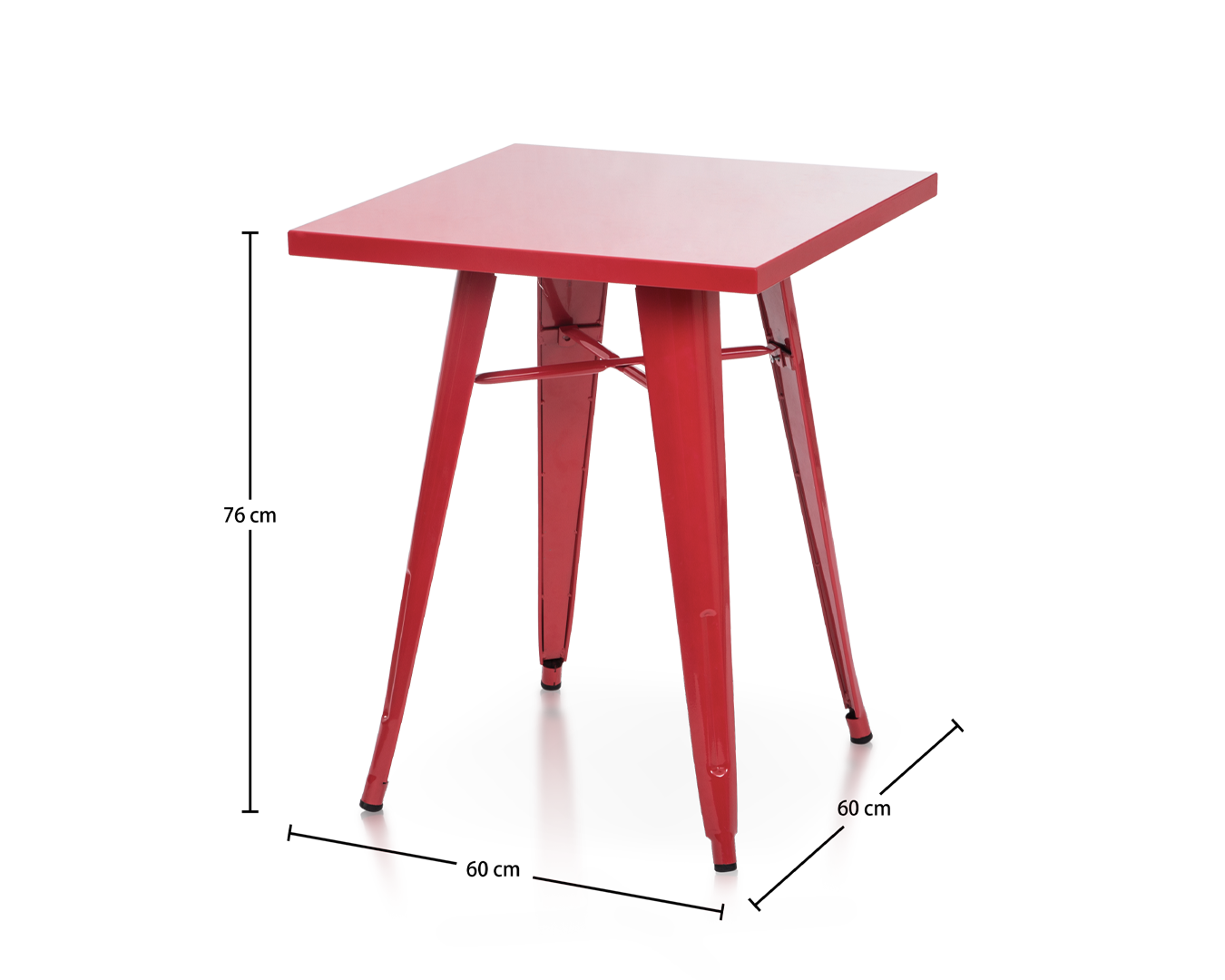 • Kết thúc màu đỏ rực rỡ mang đến cho nó một vẻ ngoài sôi động và hấp dẫn, làm cho nó trở thành một lựa chọn tuyệt vời cho những người muốn thêm một màu sắc cho ngôi nhà của họ. Cấu trúc chắc chắn của bàn, với bốn chân góc cạnh và một thanh ngang kết nối, đảm bảo nó vẫn ổn định và an toàn ngay cả khi sử dụng.
