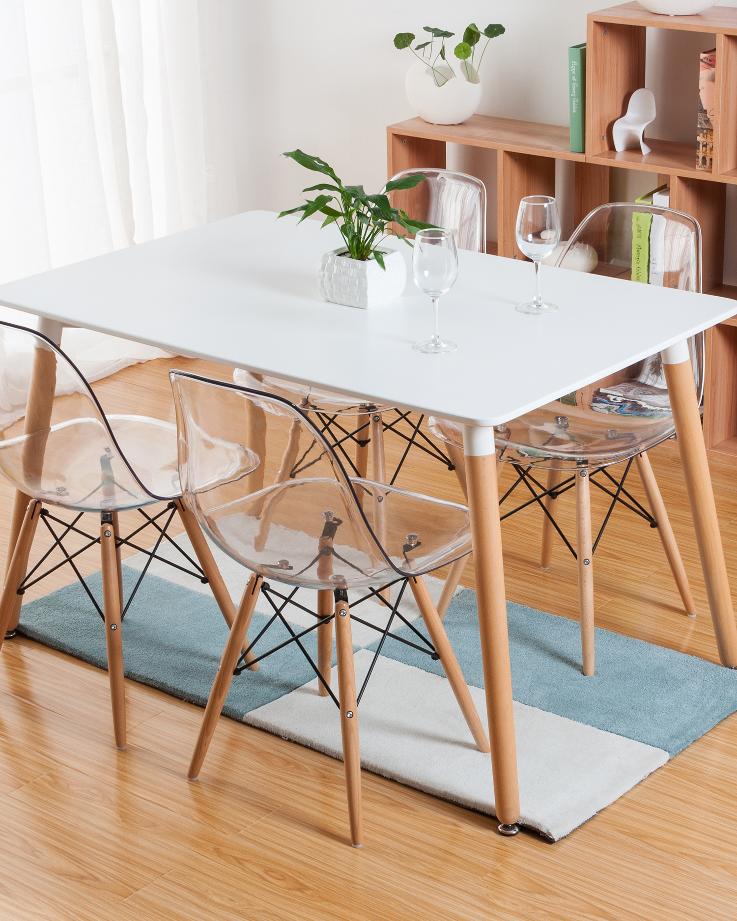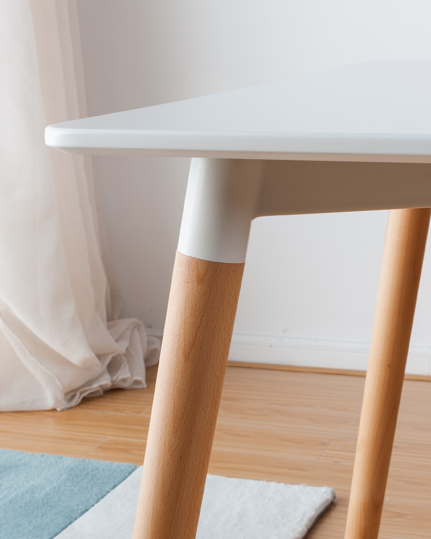 • Bàn ăn trên cùng màu trắng với đôi chân bằng gỗ là một mảnh vượt thời gian, dễ dàng pha trộn sự đơn giản hiện đại với sự ấm áp tự nhiên. Tabletop MDF sạch sẽ, cung cấp một bề mặt bóng bẩy và mịn màng, hoàn hảo cho khách, làm việc hoặc giải trí.