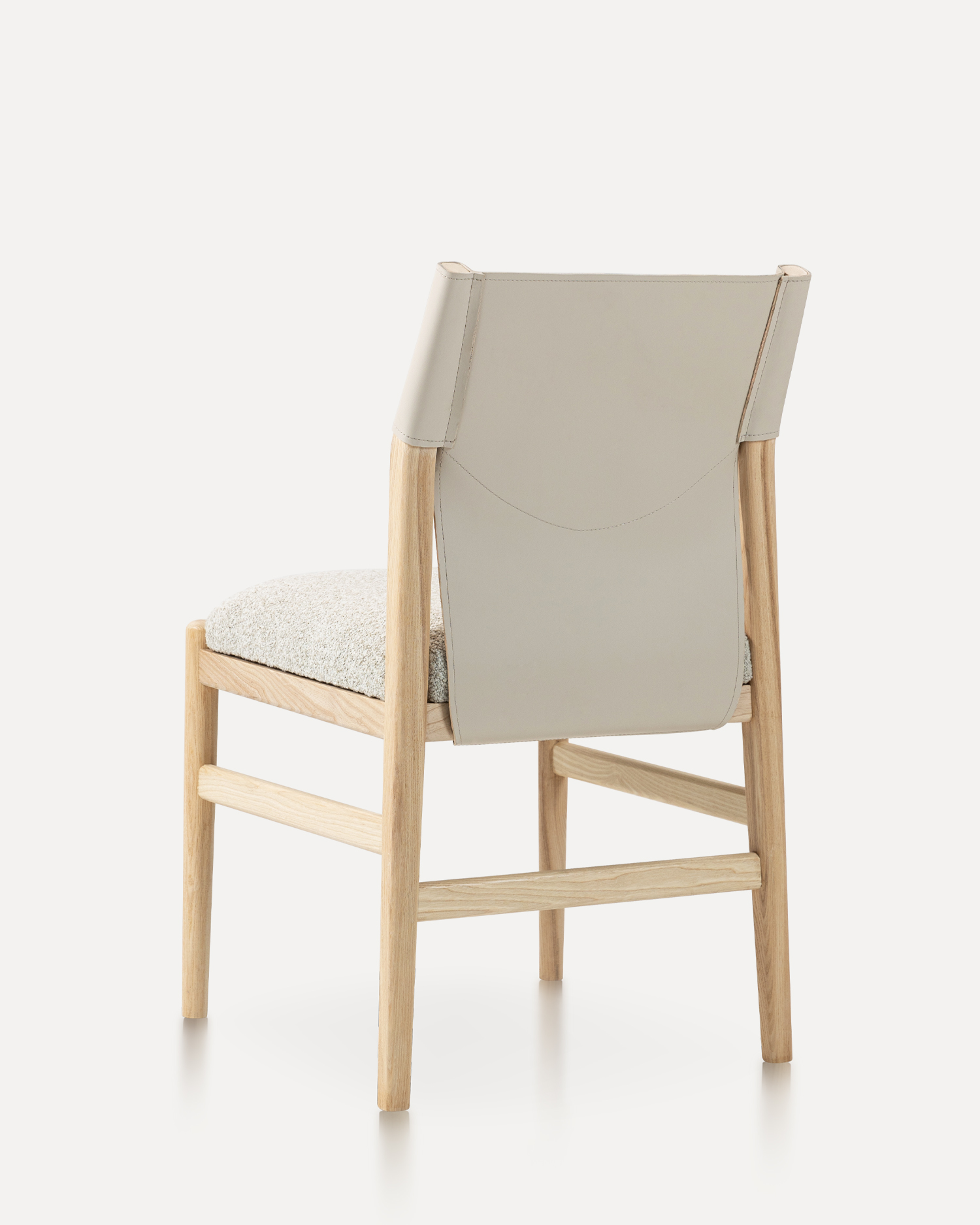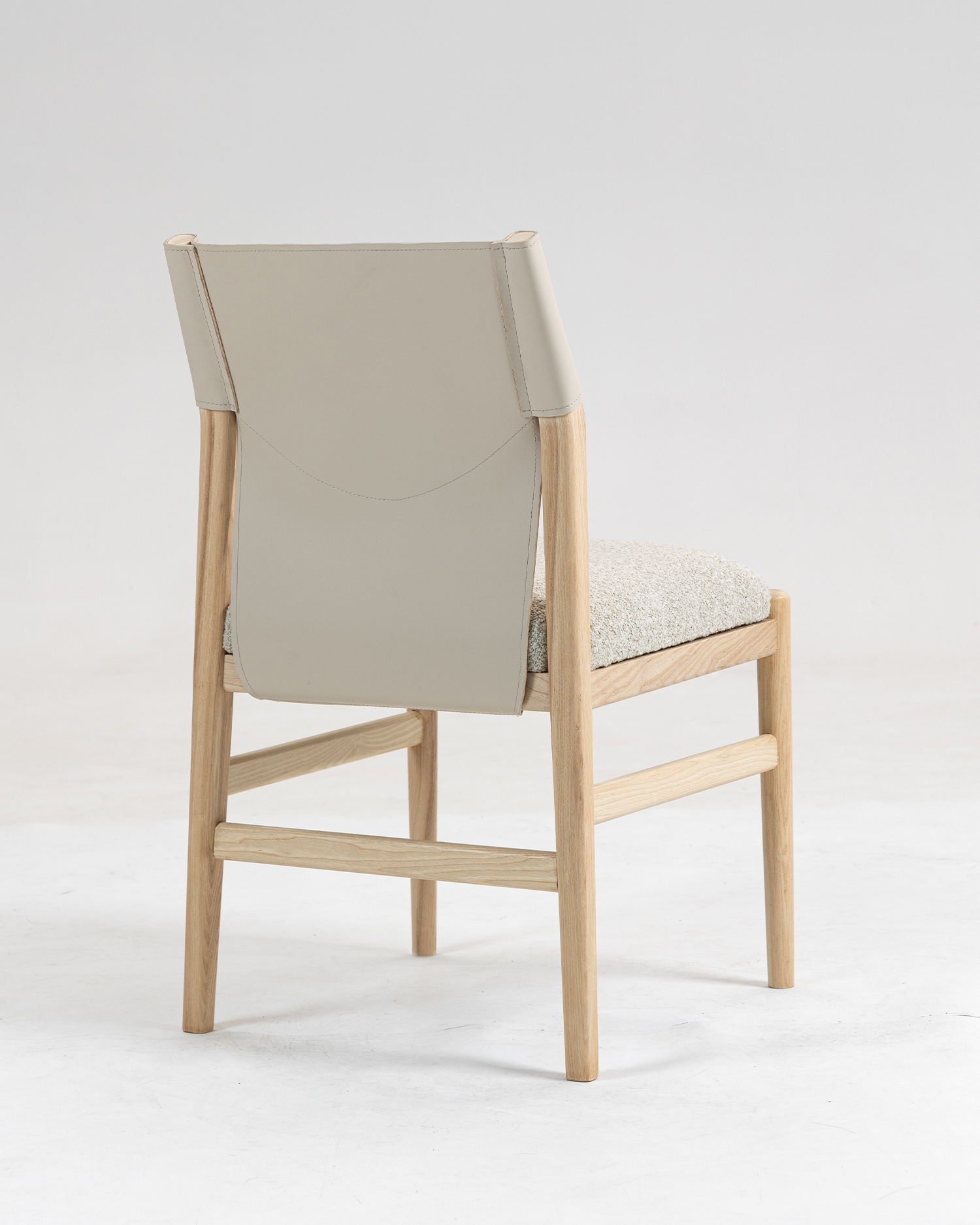 • Ghế gỗ tro nhàn nhã này với ghế da yên ngựa là một hiện thân hoàn hảo của sự thanh lịch vượt thời gian và sự thoải mái vô song.
