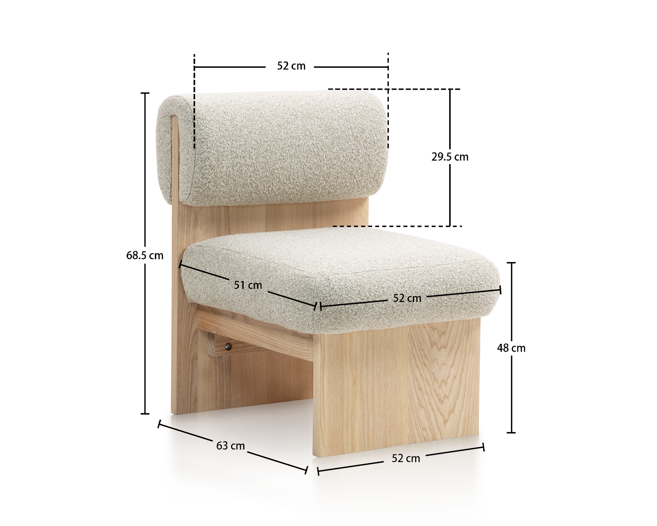 - Kích thước: W52*D63*H68.5cm / sh: 48 cm